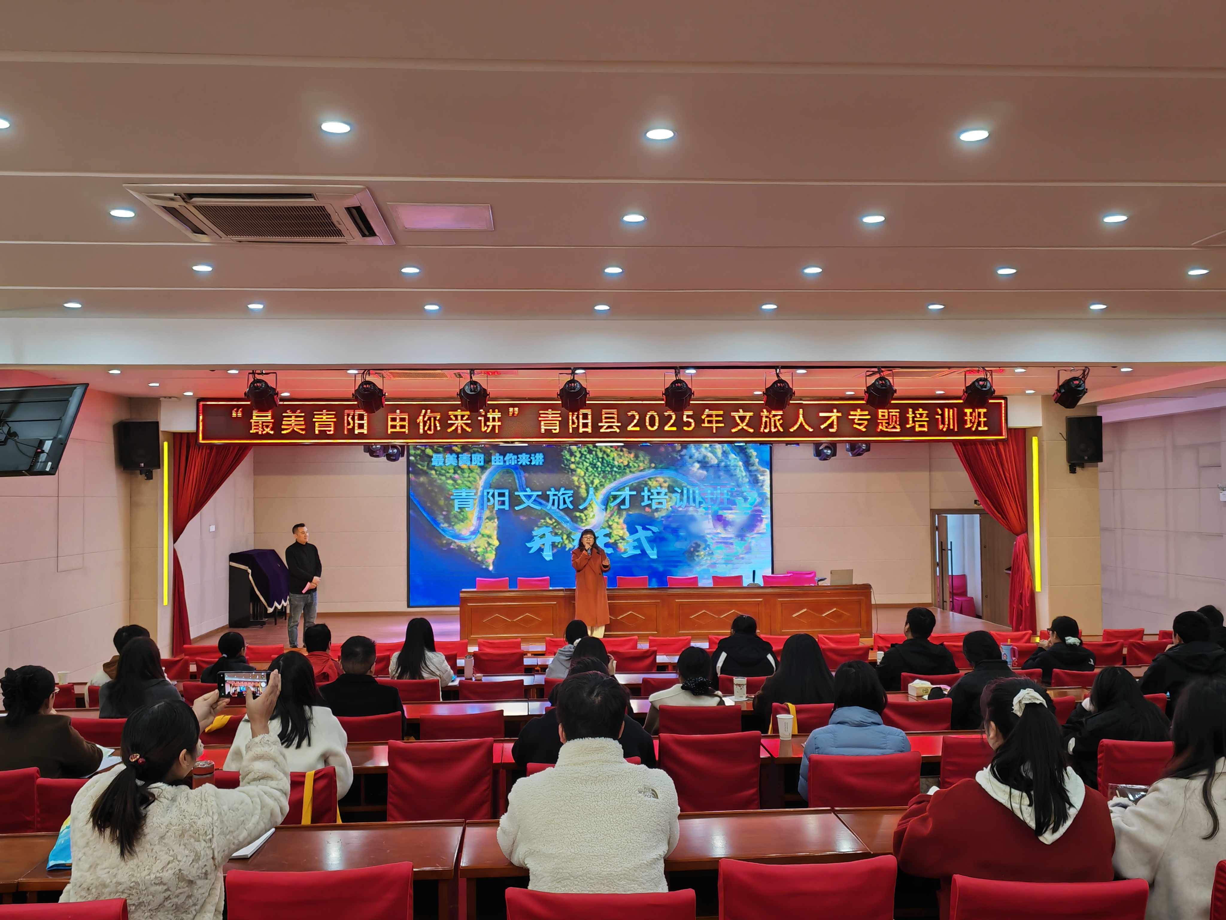 為助力青陽(yáng)縣文旅產(chǎn)業(yè)高質(zhì)量發(fā)展,打造專業(yè)化文旅人才隊(duì)伍,11月26日至28日,由青陽(yáng)縣委組織部、縣文化和旅游局、縣總工會(huì)主辦,池州市旅游學(xué)校、青陽(yáng)工匠學(xué)院承辦的“最美青陽(yáng)·由你來(lái)講”文旅人才專題培訓(xùn)班在池州市旅游學(xué)校多功能廳成功舉辦,40名來(lái)自全縣的導(dǎo)游、非遺傳承人、主播達(dá)人及皖美青陽(yáng)推薦官齊聚一堂,沉浸式參與培訓(xùn)并進(jìn)行了成果展示。